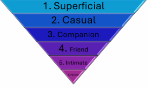 All relationships start at the superficial level, categorized as “Level 1.” Each level represents a unique and healthy relationship, and it is never a goal to move anyone to “Level…